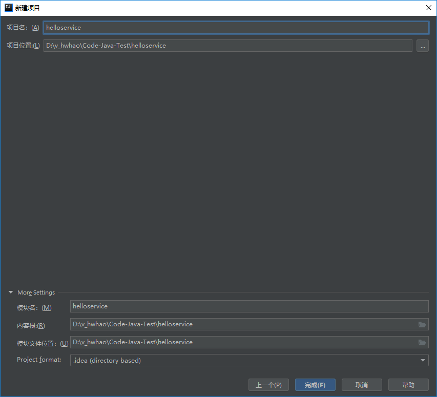 项目名称 helloservice