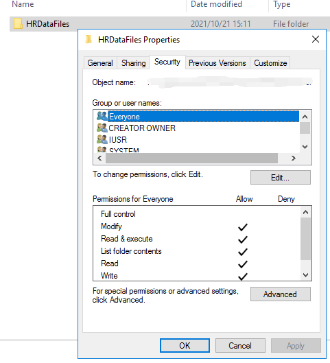 Access to the path 'F:\Luoma\HRDataFiles\2021_10_StaffWorkInfo.tmp' is denied.,详细信息at System.IO.__Error.WinIOError(Int32 errorCode, String maybeFullPath)at System.IO.FileStream.Init(String path, FileMode mode, FileAccess access, Int32 rights, Boolean useRights, FileShare share, Int32 bufferSize, FileOptions options, SECURITY_ATTRIBUTES secAttrs, String msgPath, Boolean bFromProxy, Boolean useLongPath, Boolean checkHost)at System.IO.FileStream..ctor(String path, FileMode mode, FileAccess access, FileShare share, Int32 bufferSize, FileOptions options, String msgPath, Boolean bFromProxy)at System.IO.FileStream..ctor(String path, FileMode mode)