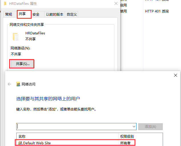 找到目录 F:\Luoma\HRDataFiles ,看看共享选项卡