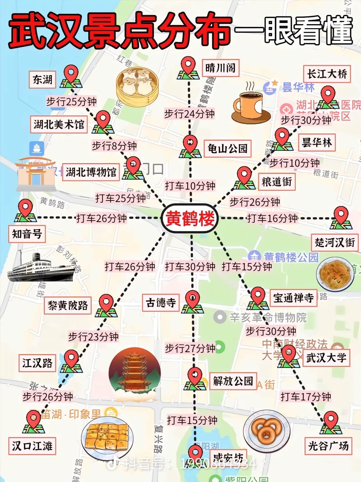 | 2025年10月5日 | 汉阳—— ● 山海关路(吃的) ● 古德寺 ● 晴川阁 ● 解放公园 ● 黎黄陂路 ● 江汉关博物馆 ● 江汉路步行街 ● 武商梦时代(亚洲第一大商场) ● 黄埔路站-武汉天地 |