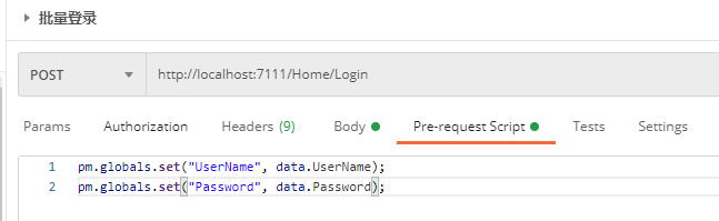 pm.globals.set("UserName", data.UserName);pm.globals.set("Password", data.Password);