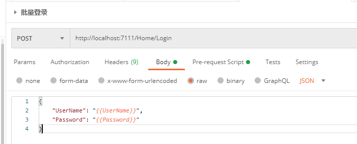 请求的 Body 从全局变量 UserName,Password 读取值进行请求