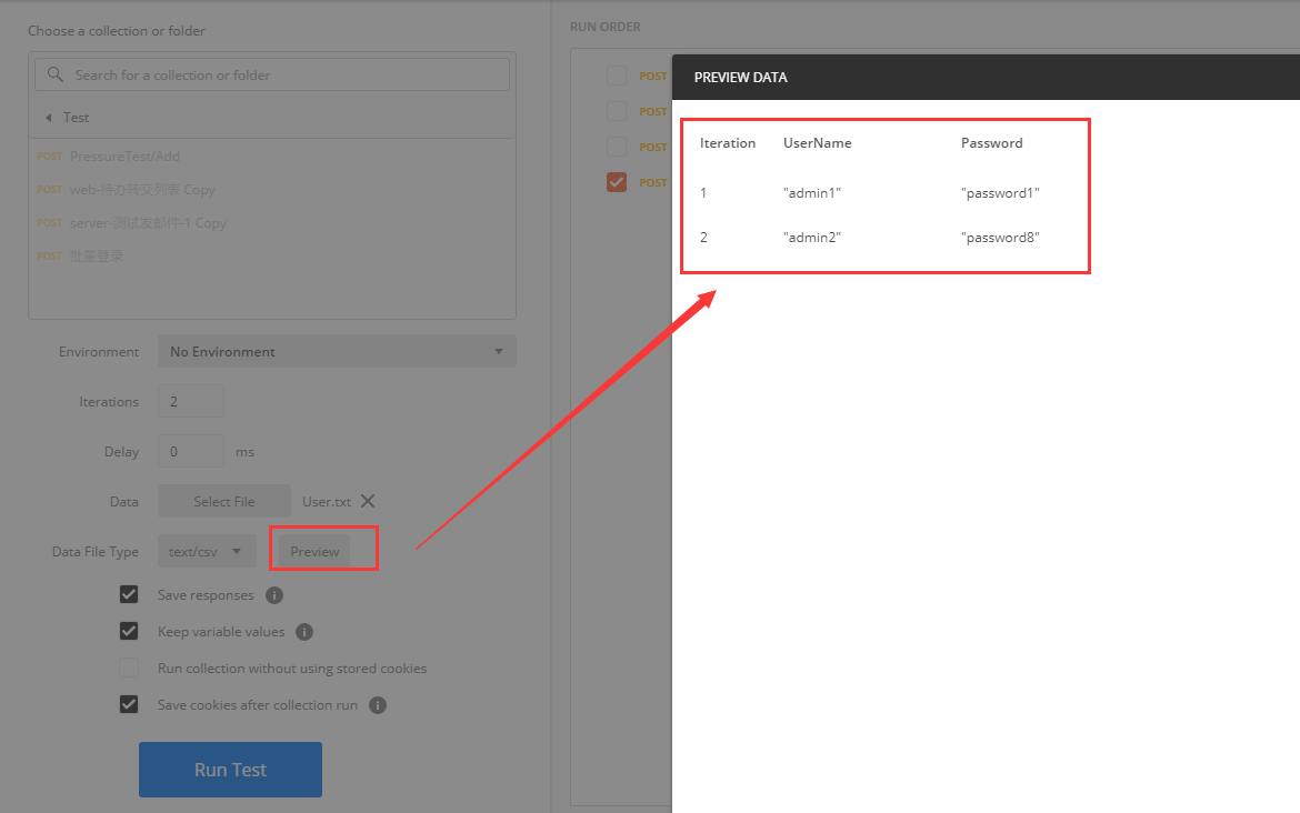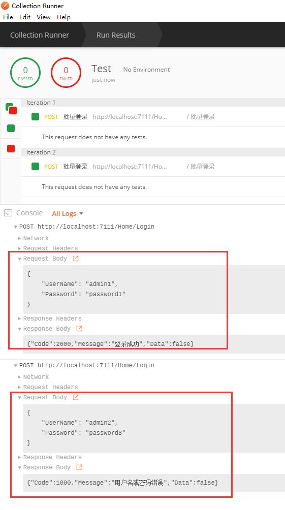 Postman 读取文本文件内容,批量进行登录,并返回登录结果